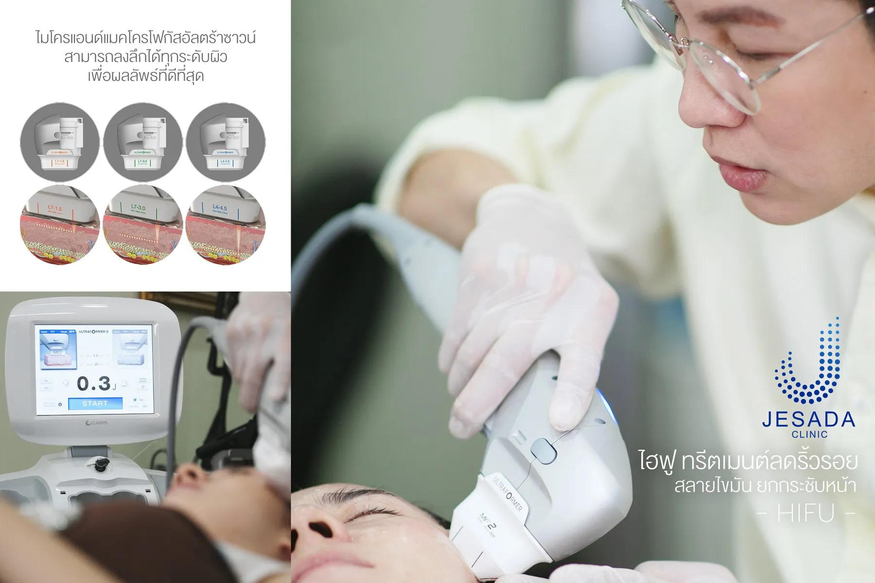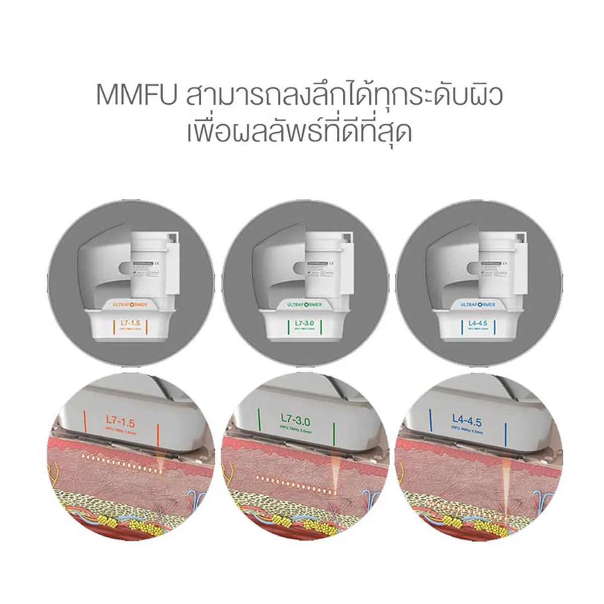 ด้วยเทคโนโลยี MMFU (Micro & Macro Focused Ultrasound) เป็นเทคโนโลยีใหม่ช่วยในการกระชับผิวได้ทุกระดับชั้นด้วยความปลอดภัย และไม่มีแผลหลังการรักษา